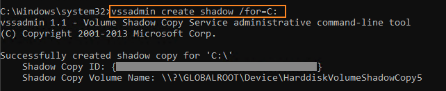 vssadmin create shadow /for=C: