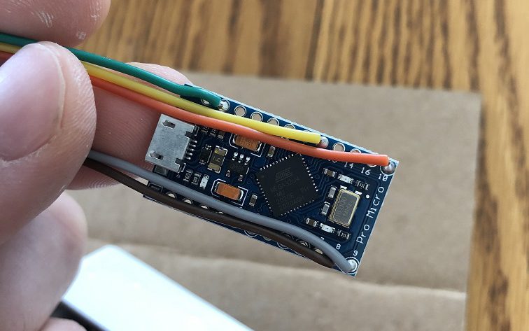 The Sparkfun Pro Micro is doing the lion’s share of the work in this project. It’s a tiny programmable microcontroller that allows you to automate and program a wide variety of tasks. Here’s what it looks like: