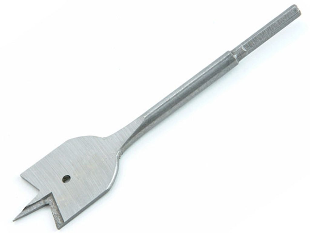 For the wider arcade-style buttons, I used a 1″ flat spade-type drill bit. I think these are generally used for woodworking but with the relatively soft aluminum it worked just fine for me.