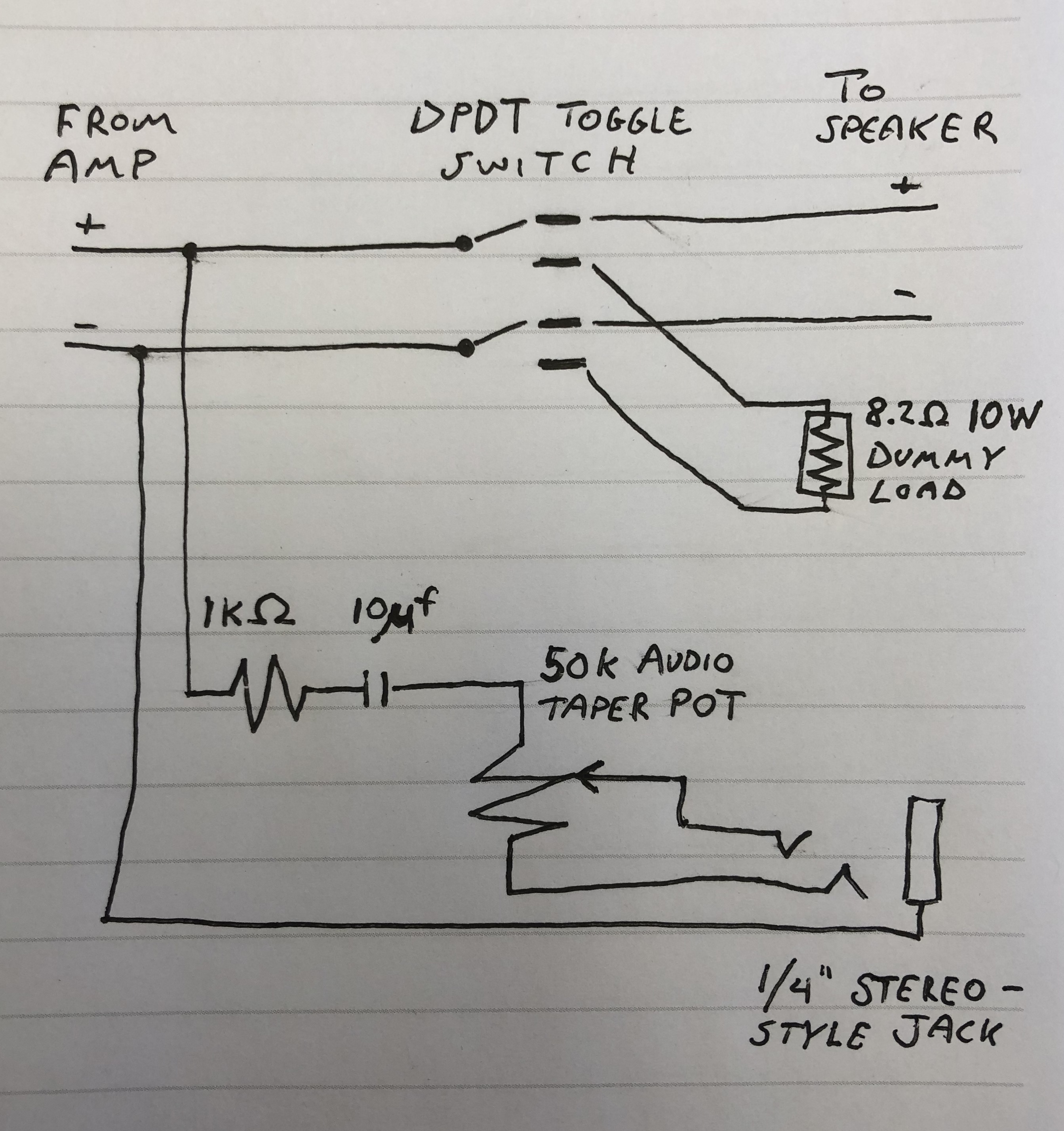 It’s important to note that this switch is not just cutting the signal to the speaker, it’s actually replacing the speaker with a power resistor, which acts as a “dummy load”. To the amp, this resistor looks and behaves like the speaker would, it just doesn’t make any sound. This is especially important for older tube amps as they were generally designed to run with a specific load and can actually incur significant damage if there is no load at all.