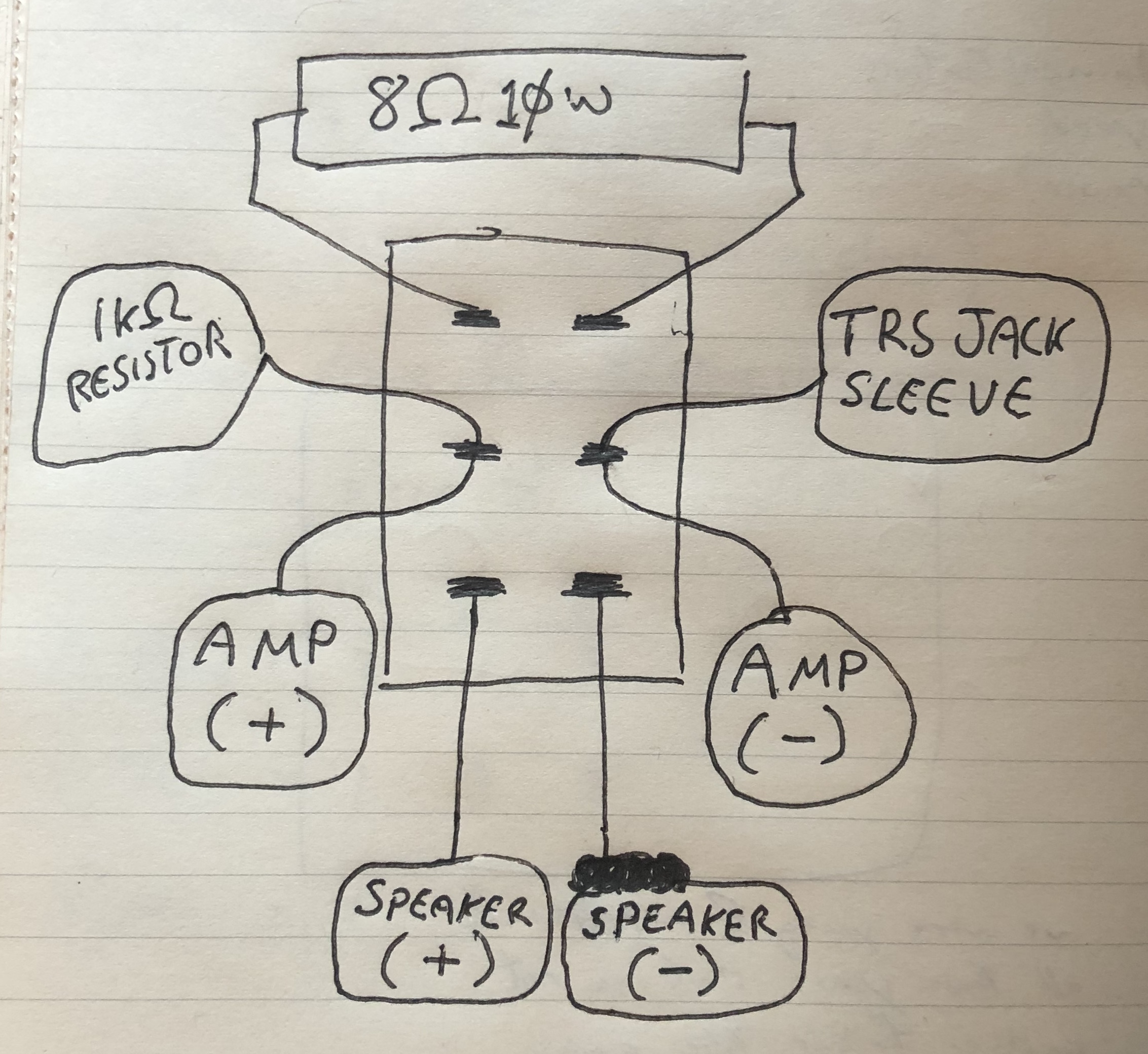 Now you’re ready to start soldering! Here, you’ll want to follow this very professional circuit diagram that I drew in a notebook: